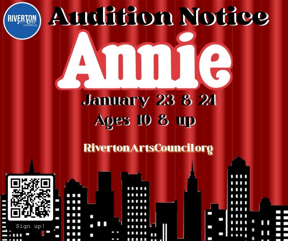 Riverton Arts Council is excited to announce auditions for ANNIE, directed by Adam Cannon! Performers of all experience levels, ages 10+ are encouraged to audition for this beloved, high-energy musical.